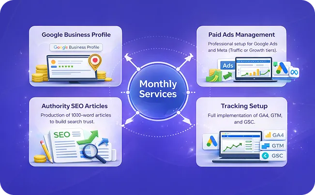 Professional setup for Google Ads and Meta (Traffic or Growth tiers).